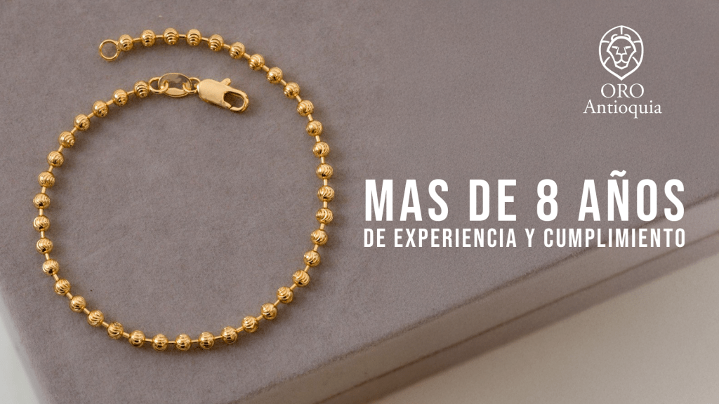 Nuestro material es una aleación de varios metales nobles donde están presentes oro 18k paladium, cobre entre otros. Realizando joyas bajo un método de fabricación novedoso y de alta calidad que permite obtener una joya con un porcentaje de oro mayor a un baño o enchape y con calidad excepcional, además por su contenido de oro nos da la misma tonalidad y brillo de este. Es antialérgico, cuenta con garantÃa por cambio de color y sus detalles y terminaciones son preciosos. Todas estas ventajas lo convierten en un producto atractivo y de fácil comercialización.